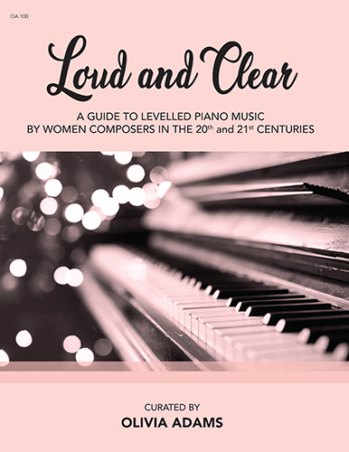 A guide to levelled piano music by women composers by Olivia Adams. Loud and Clear is a resource guide for pianists and teachers which includes nearly 4,000 levelled music titles by women composers from Preparatory to Diploma levels, complete with timelines, graphics, bios, fun facts, and new research data on women in music conservatories. Published by Debra Wanless Music. Shipping for the book is an additional $7 for local and $15 for international. Book purchases will be shipped the week of purchasing.
